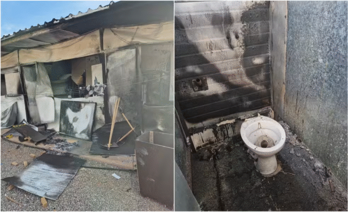 Segundo a fiscalização, um incêndio que atingiu parte dos alojamentos teria sido provocado por trabalhadores como forma de protesto contra as constantes falhas no fornecimento de energia elétrica e água potável.