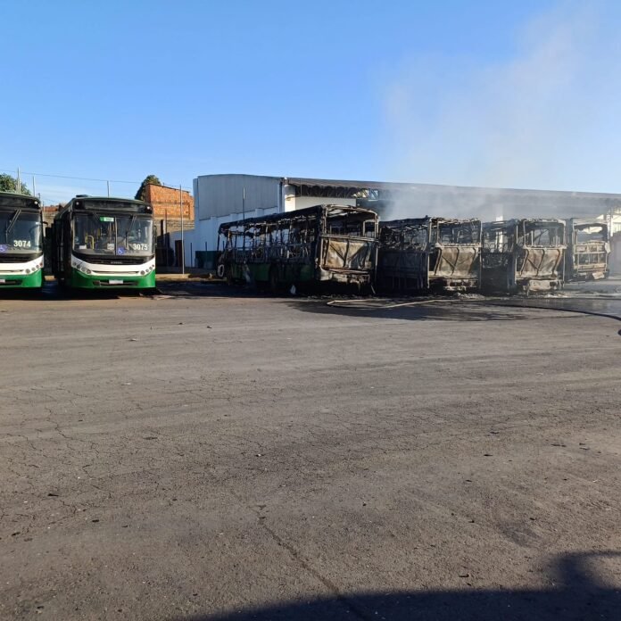Mesmo após um incêndio atingir seis ônibus na garagem da Caribus Transportes, no bairro São João Del Rei, em Cuiabá, na tarde deste domingo (10), o transporte coletivo da Capital seguirá operando normalmente. Quatro veículos tiveram perda total, sendo três antigos, que já não circulavam e dois sofreram danos parciais, com possibilidade de reparo.