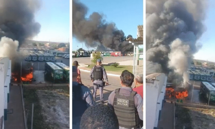 Um incêndio atingiu seis ônibus que estavam na garagem da Caribus Transportes, no Bairro São João Del Rei, em Cuiabá, nesse domingo (10). Quatro veículos tiveram perda total, sendo três antigos, que já não circulavam, e dois sofreram danos parciais, com possibilidade de reparo, segundo a prefeitura da capital.