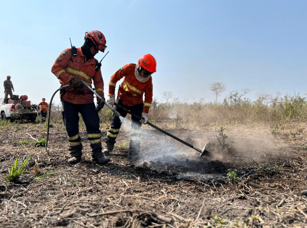 O Corpo de Bombeiros Militar de Mato Grosso (CBMMT) extinguiu, nas últimas 24 horas, três incêndios florestais e segue atuando, nesta quarta-feira (13.8), no combate a outros oito focos ativos em diferentes regiões do estado.