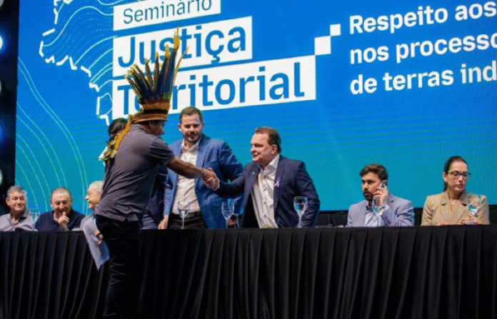 O presidente da Assembleia Legislativa de Mato Grosso (ALMT), deputado Max Russi, participou na manhã da última quinta-feira (14) do Seminário Justiça Territorial: respeito aos direitos civis nos processos de demarcação de terras indígenas, realizado pela Associação Mato-grossense dos Municípios (AMM) e pela Associação dos Produtores de Soja e Milho de Mato Grosso (Aprosoja-MT). O evento reuniu prefeitos, parlamentares, lideranças do agronegócio e autoridades para debater os impactos das demarcações sobre a produção agropecuária e a segurança jurídica no estado.