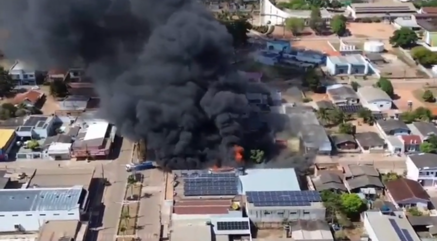 Imagens registradas por moradores da região mostram uma nuvem de fumaça saindo do telhado do comércio (vídeo abaixo)