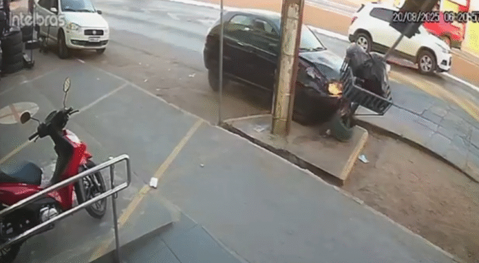 Câmeras de segurança de uma farmácia registraram o momento em que Fernando da Silva Ribeiro, de 49 anos, bate o carro contra uma placa de trânsito e morre na Avenida Monte Líbano, em Cuiabá, nesta quarta-feira (20). A suspeita é que o motorista sofreu um mal súbito enquanto dirigia.