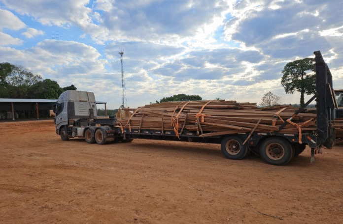 A Secretaria de Estado de Meio Ambiente (Sema-MT) apreendeu 34,02 metros cúbicos de madeira serrada da espécie Castanheira (Bertholletia excelsa) em duas propriedades rurais no município de Nova Bandeirantes. A madeira apreendida lotou dois caminhões e foi doada à Prefeitura Municipal de Nova Bandeirantes.