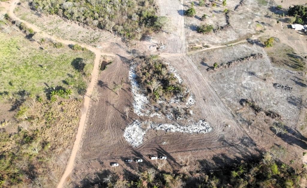 O local foi encontrado por meio de monitoramento via satélite na região durante a Operação Infravermelho, segundo as autoridades. Diante da detecção, uma equipe foi mobilizada para realizar a verificação in loco e confirmou a presença de uma área desmatada, onde ocorria uma queima ativa e irregular.