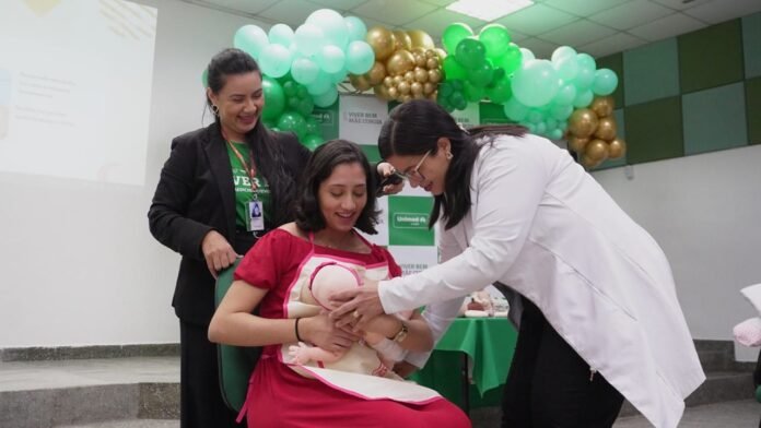 A programação incluiu palestras sobre a importância da amamentação e um curso prático de primeiros socorros voltado para bebês de 0 a 2 anos, além da entrega de brindes às participantes.