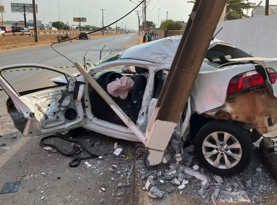 Dois jovens ficaram gravemente feridos após o carro em que estavam bater em um poste da rede elétrica, na Avenida Idemar Riede, em Sorriso, a 420 km de Cuiabá, neste domingo (14). Com o impacto, o carro ficou completamente destruído e a estrutura de concreto foi danificada.