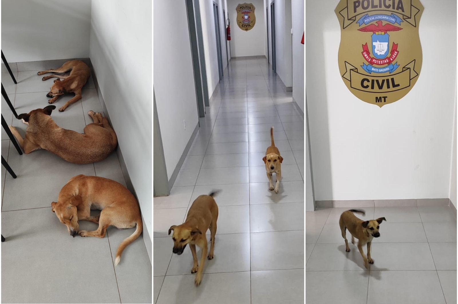 🐕Popularmente chamados de ‘caramelos’ pela cor da pelagem, os vira-latas viviam em situação de rua quando foram adotados pela gestão anterior da delegacia.