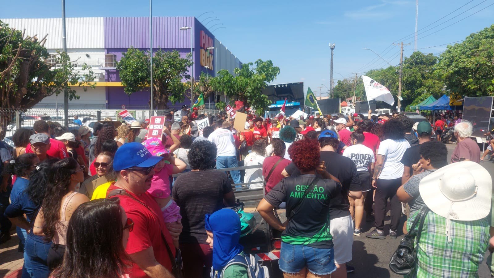 O protesto, convocado por partidos de esquerda, aconteceu durante a manhã na Praça Cultural do CPA 2.