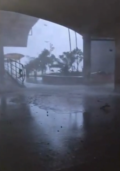 Em vídeos registrados por moradores, é possível ver a força dos ventos e a intensidade da chuva que atingiu o município. Em um dos registros, feitos de uma escola, os fortes ventos e a chuva atingem o local em que algumas pessoas se abrigam (veja abaixo).