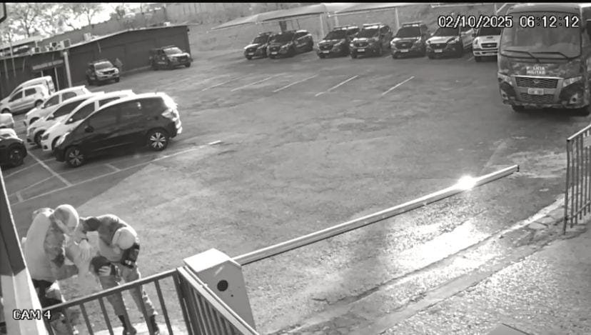Toda a ação foi registrada pelas câmeras de segurança do batalhão, que captaram o momento da chegada da família e o atendimento prestado pelos militares.