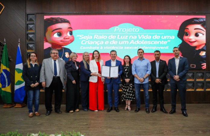 O Governo de Mato Grosso, por meio da Secretaria de Estado de Assistência Social e Cidadania (Setasc) e da Polícia Judiciária Civil (PJC), lançou nesta terça-feira (7.10), no Palácio Paiaguás, o projeto “Seja Raio de Luz na Vida de uma Criança e de um Adolescente”, que tem como foco o combate à violência sexual infantil e juvenil. A ação conta com o apoio da primeira-dama do Estado, Virginia Mendes, e foi formalizada por meio da assinatura do Protocolo de Intenções nº 001/2025 entre a Setasc, a Secretaria de Estado de Segurança Pública (Sesp) e a PJC.