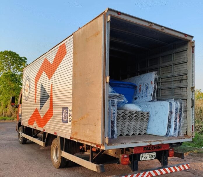 Um caminhão com telhas, caixas d’água, colchões e kits dormitório foi enviado ao município para apoio emergencial.