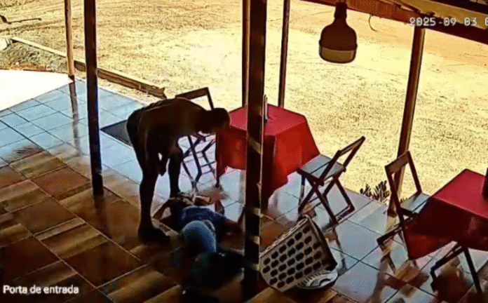 Vídeo que circula nas redes sociais mostra Jucieli Ribeiro Caju Boa Morte, 30, sendo atacada pelo ex-companheiro Luciano Oliveira de Sousa, 32, no dia 3 de setembro, enquanto trabalhava em Rosário Oeste. Lucieli foi morta a tiros por Luciano dentro de casa, em Nobres, nesta segunda-feira (13). O atual namorado dela reagiu, tomou a arma e matou Luciano em seguida.