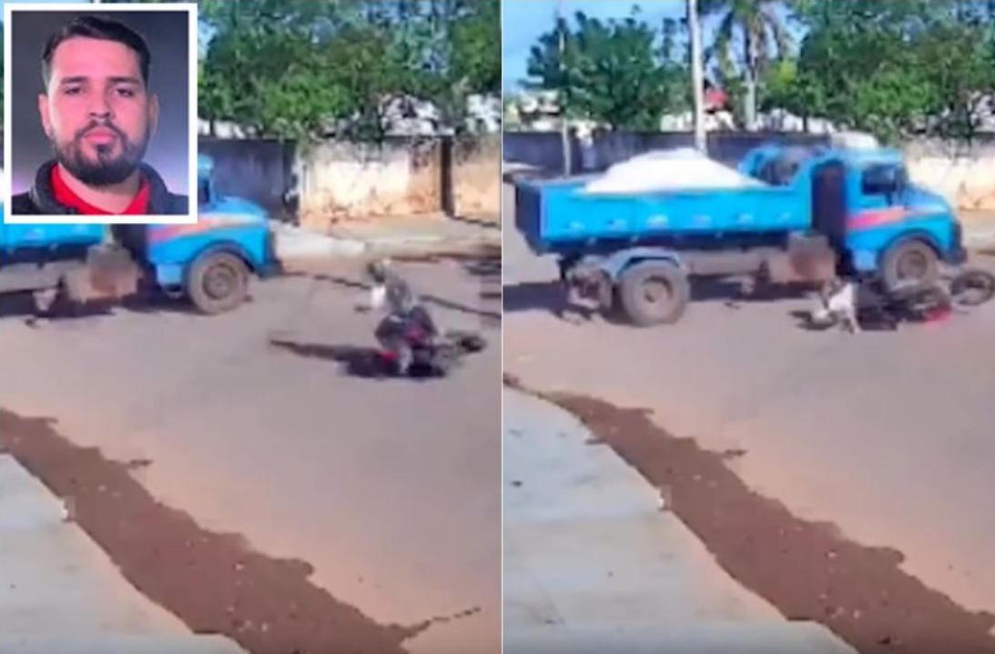 Câmera de segurança registrou o exato momento em que David Wilkerson Gonçalves de Menezes, 23, cai da moto e é atropelado por um caminhão que realizava um cruzamento na tarde dessa terça-feira (14), no bairro Jardim Nova Sul, em Barra do Garças (509 km a leste de Cuiabá).
