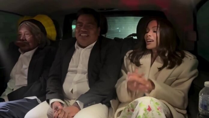 Eles estavam a caminho da cerimônia da 13ª edição do Liberatum, um evento promovido por uma organização global diplomática, em tributo ao cacique pela defesa da Amazônia e dos povos indígenas.
