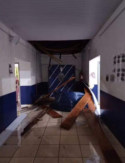 Uma caixa d’água caiu dentro da Escola Estadual Francisco Saldanha Neto na noite de terça-feira (21) em Tabaporã, a 643 km de Cuiabá. Os funcionários que estavam no local se assustaram com o acidente. Ninguém se feriu.