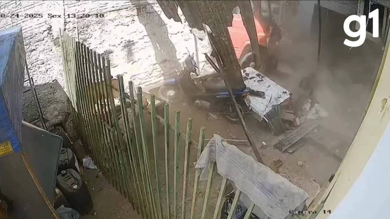 O motorista de um caminhão perdeu controle do veículo e derrubou o muro de uma loja de baterias, em Rondonópolis, a 218 km de Cuiabá, nessa sexta-feira (24). Câmeras de segurança da região registraram o momento do acidente (vídeo Abaixo).