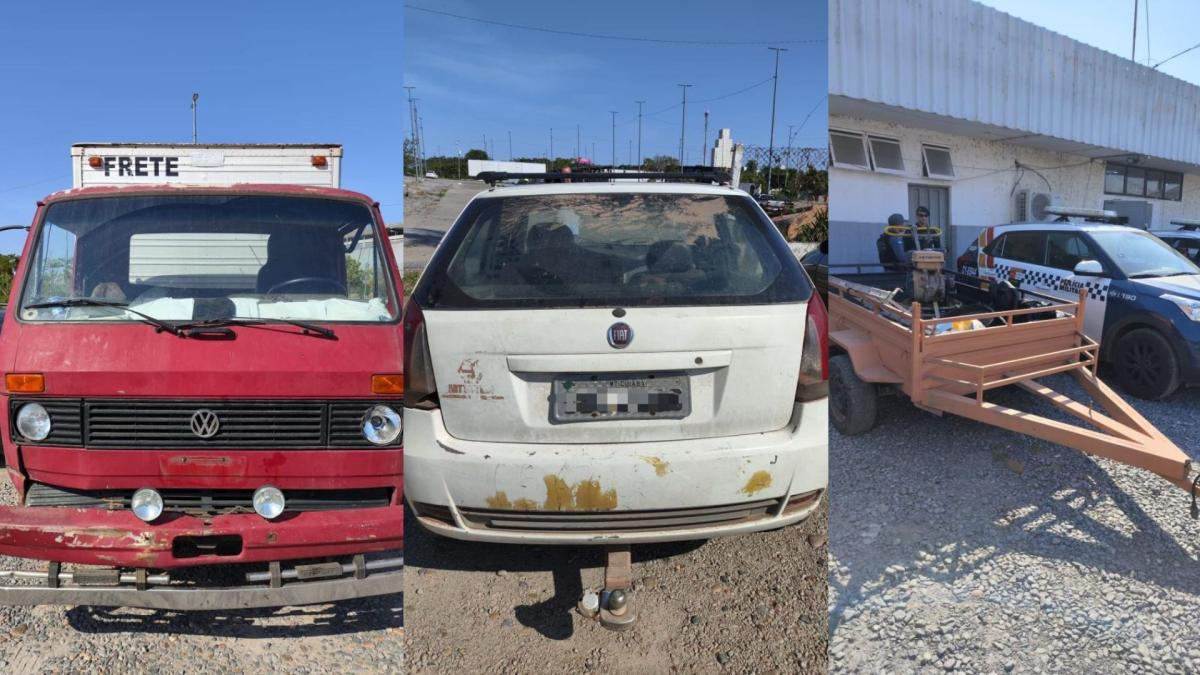 Ao chegar ao local, os policiais visualizaram um veículo Fiat Palio saindo do barracão e realizaram a abordagem a quatro homens. Em seguida, a equipe entrou na base e flagrou outros dois homens em um caminhão que, ao ver a presença policial, tentaram fugir.