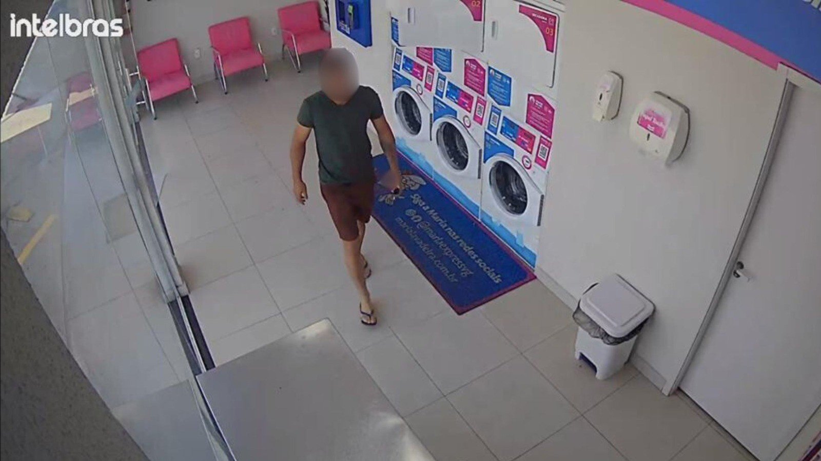 Imagens das câmeras de segurança mostram o momento em que o suspeito furta as cestas de roupas e sai do estabelecimento (assista abaixo).