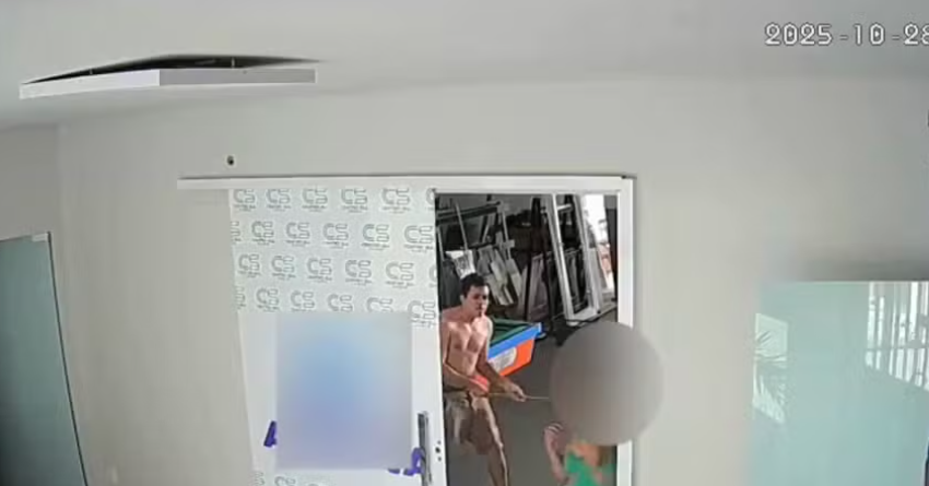 Uma câmera de segurança registrou o momento da agressão. As imagens mostram o suspeito agredindo a vítima pelas costas.