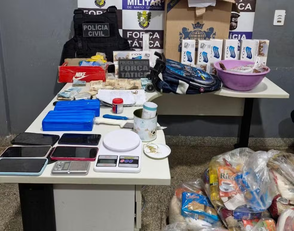 Durante a ação, a Polícia Militar apreendeu três tabletes de drogas, sendo um de maconha e dois de cocaína, além de 58 cestas básicas, mais de R$ 13 mil em dinheiro e uma paca abatida.