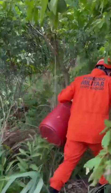 De acordo com o Corpo de Bombeiros Militar de Mato Grosso (CBMMT), o proprietário da casa avistou o animal por volta das 13h e acionou a 3ª Companhia Independente Bombeiro Militar (3ª CIBM) para realizar o resgate.
