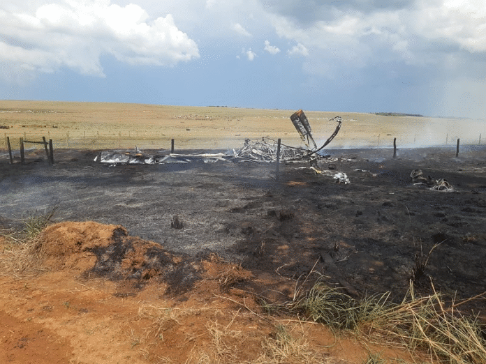 A aeronave pegou fogo pouco depois da batida, e as chamas se alastraram na região. Incêndio foi contido pelos bombeiros, que atuam no local.