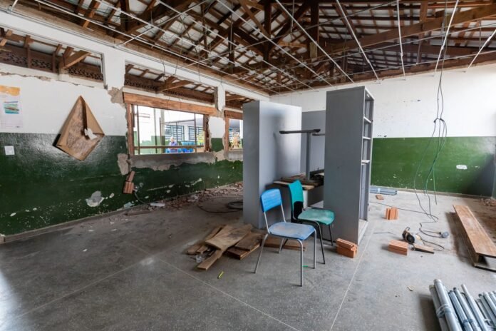 A Prefeitura de Cuiabá mantém 18 obras de reforma em escolas públicas. Em todas essas unidades, são realizados serviços de reparos na parte elétrica, pintura, telhado e troca de portas. Há também a programação de entrega de novos equipamentos para cozinha e refrigeração nas escolas.
