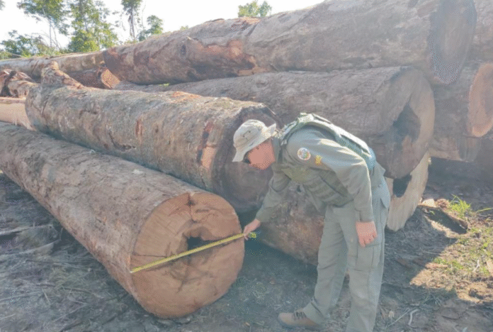 No local, as equipes constataram destruição de vegetação nativa do bioma Amazônico e exploração seletiva de madeira sem as autorizações necessárias para a realização do desmate. A Sema identificou, posteriormente, que a área afetada pela extração ilegal somou 13,4 hectares no ano de 2025.