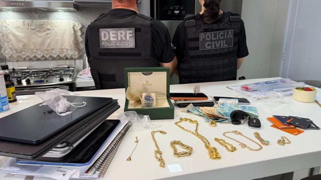 Durante a ação em Rondonópolis, foram apreendidos um notebook, um Onix, três iPads, um monitor Asus, três telefones celulares, 17 cartões bancários, R$ 1.850 em espécie, dois cadernos com anotações, dois cheques em nome de terceiros, cada um no valor de R$ 4.500, 10 itens dourados, entre correntes e pulseiras, um relógio com caixa da marca Rolex, entre outros pertences de alto valor.