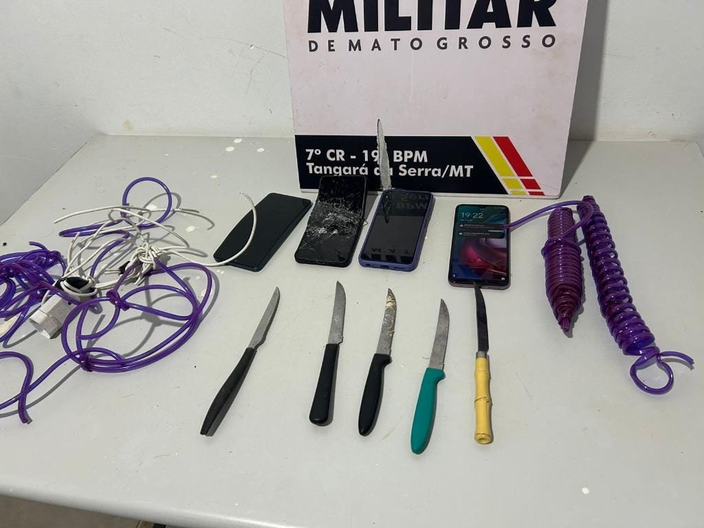 Policiais militares do 19º Batalhão resgataram, na noite desta segunda-feira (8), quatro pessoas mantidas reféns e apreenderam quatro adolescentes por sequestro e cárcere privado, em Tangará da Serra (252 km de Cuiabá). As equipes recolheram três facas e dois rolos de fios elétricos e de cadeiras, utilizados para ameaçar e conter as vítimas.