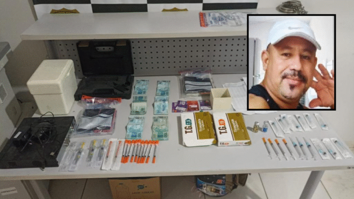 Foram apreendidos diversos materiais, como unidades de Enoxaparina, 29 seringas, um DVR, cartão de memória, estojo de arma com acessórios, além de ampolas de Benzilpenicilina e Drostanolona.