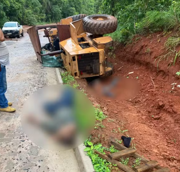 O acidente aconteceu depois que um trator apresentou falha nos freios. Com isso, o condutor perdeu o controle da direção, e o veículo desceu desgovernado, caiu em uma valeta paralela à estrada e capotou.
