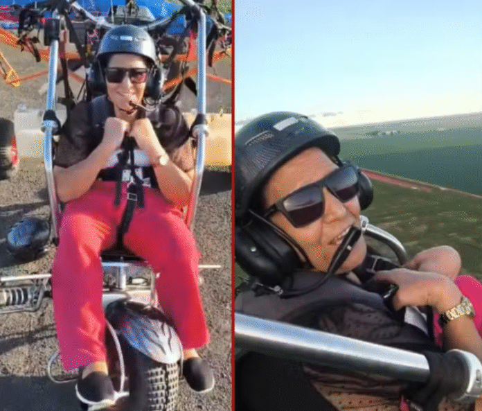 “Não estou com medo”, disse Marlene momentos antes de decolar com o filho, que filmou todo o passeio.