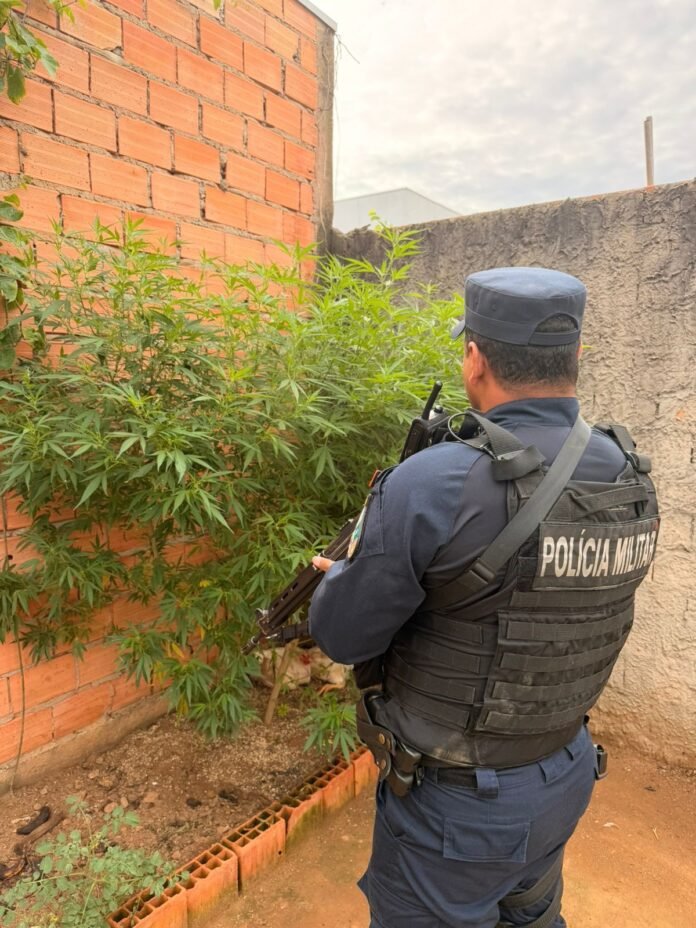 Equipe recebeu a denúncia de que a moradora estaria sendo vítima de agressão do marido, mas no local encontraram o cultivo proibido de cannabis.