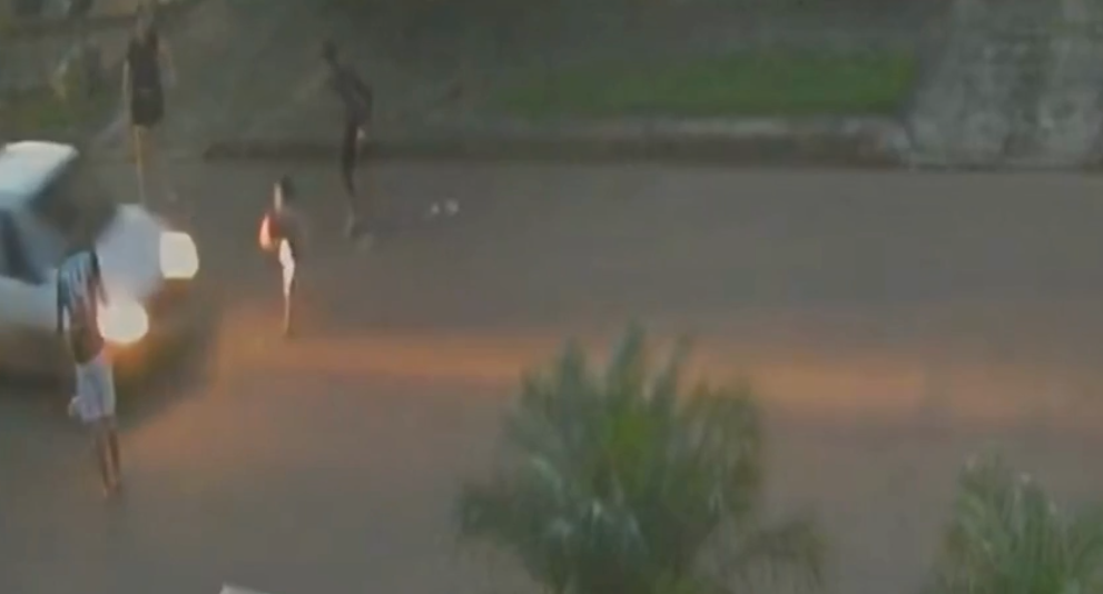 Câmeras de monitoramento da região registraram o momento em que a criança é atingida, no último domingo (18).