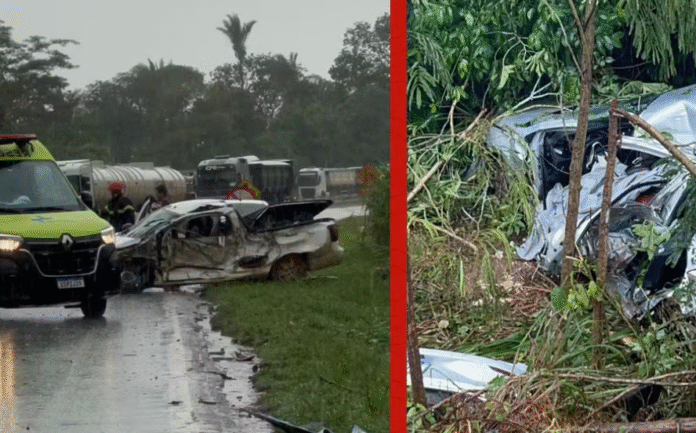 Um casal que havia acabado de se casar e seguia para a lua de mel sofreu um grave acidente na tarde desta quarta-feira (28), no km 278 da BR-364, em Jaciara, a 147 km de Cuiabá. Segundo o Corpo de Bombeiros Militar de Mato Grosso (CBMMT), o acidente envolveu um caminhão e dois carros de passeio e ocorreu após uma colisão de grande impacto. A batida deixou uma pessoa morta e outras três feridas.