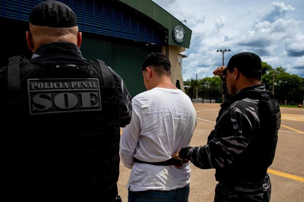 O preso foi transportado em uma aeronave do Centro Integrado de Operações Aéreas, acompanhado por equipes da Polícia Militar e da Polícia Civil. Algemado, ele foi retirado do avião e encaminhado diretamente para a Penitenciária Central do Estado, maior unidade prisional do estado.
