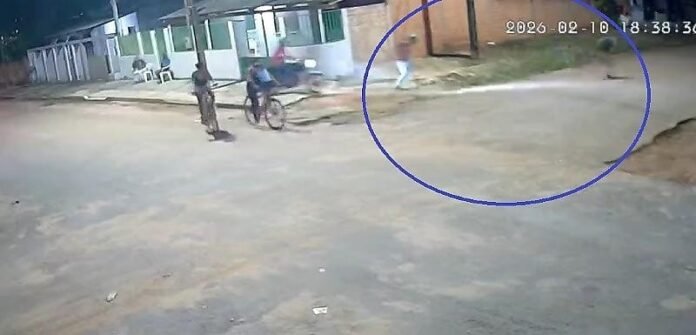 Imagens de câmeras de segurança mostram o momento em que um suspeito, em uma motocicleta Honda de cor escura, tenta abordar Lucas e um amigo no meio da rua. Os dois correm, mas são perseguidos. Lucas foi alcançado e baleado.