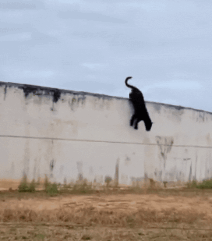 Nas imagens, é possível ouvir a surpresa da pessoa que presenciou a cena ao se deparar com o felino, fora do ambiente onde costuma ser visto.
