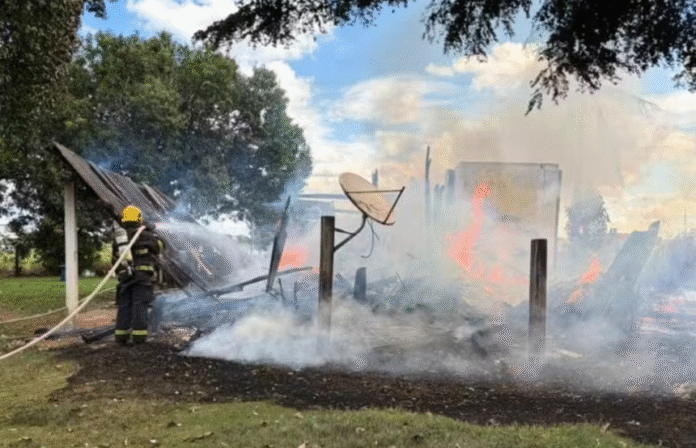 O fogo começou durante a queima de pragas no terreno. Com o vento, as chamas se espalharam pela vegetação e, em seguida, alcançaram a residência.