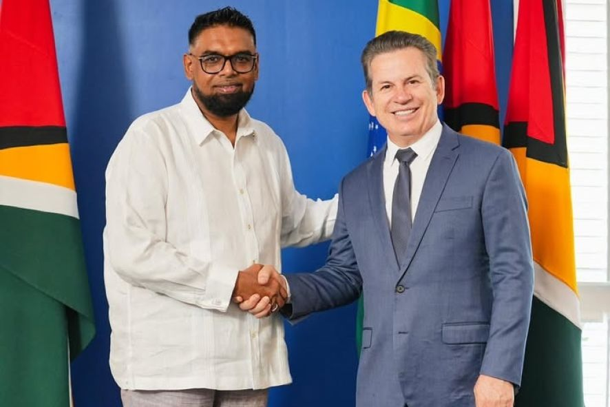 O presidente da Guiana Mohamed Irfaan Ali e o governador Mauro Mendes