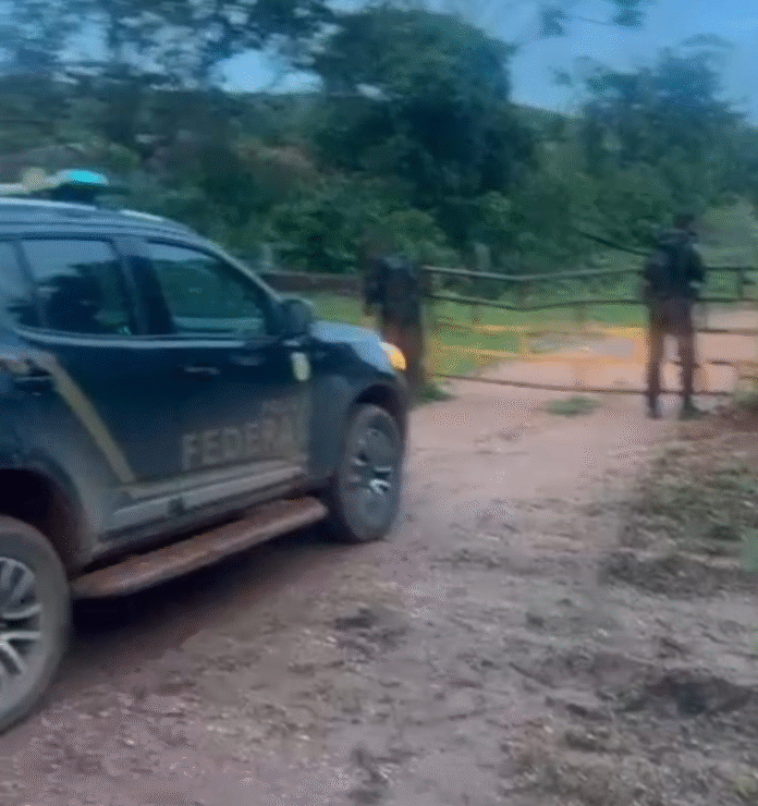 Imagens gravadas pela Polícia Federal mostram o momento em que os agentes entram nesta segunda-feira (24) em uma fazenda investigada por suspeita de armazenar combustível para abastecer o garimpo ilegal na Terra Indígena em Sararé, localizada em Pontes e Lacerda, a 483 km de Cuiabá (assista abaixo).