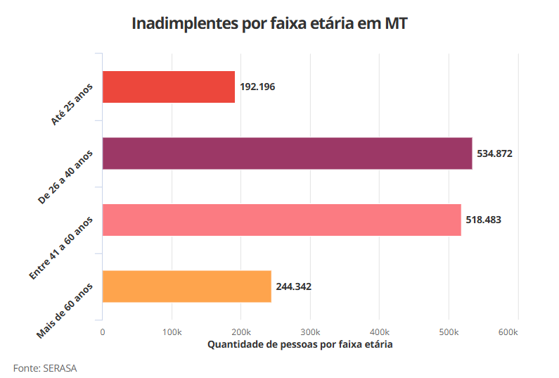 De acordo com o levantamento, 53,3% dos inadimplentes são homens. A maior concentração está na faixa etária entre 26 e 60 anos, que representa 70,7% do total, com mais de 1 milhão de pessoas.