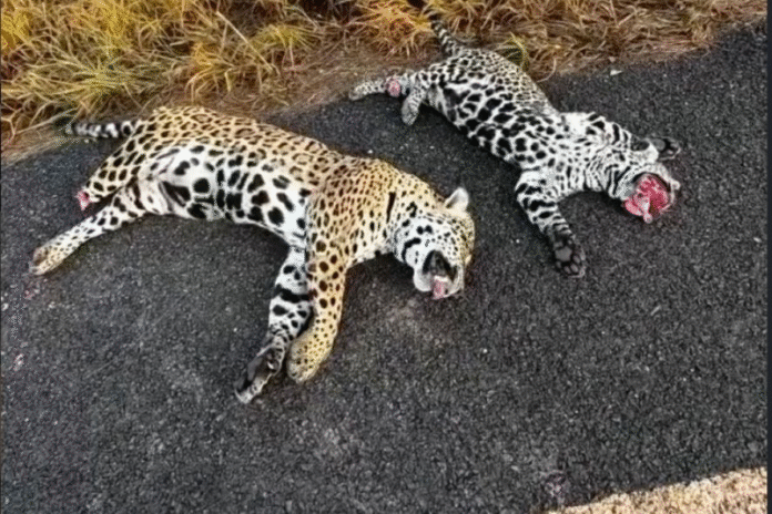 Duas onças-pintadas foram encontradas mortas na manhã desta quinta-feira (26) na rodovia MT-560, entre os municípios de Sorriso e Tapurah, a cerca de 414 km de Cuiabá. Os animais estavam às margens da pista e, segundo relato de um motorista que passava pelo local, podem ter sido atropelados.