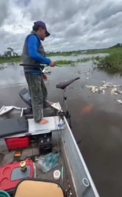 Um vídeo que circula nas redes sociais mostra dezenas de peixes mortos boiando no Rio Paraguai, em Cáceres, a 220 km de Cuiabá. As imagens foram registradas por pescadores da região neste sábado (7) durante uma pescaria. (Video abaixo)