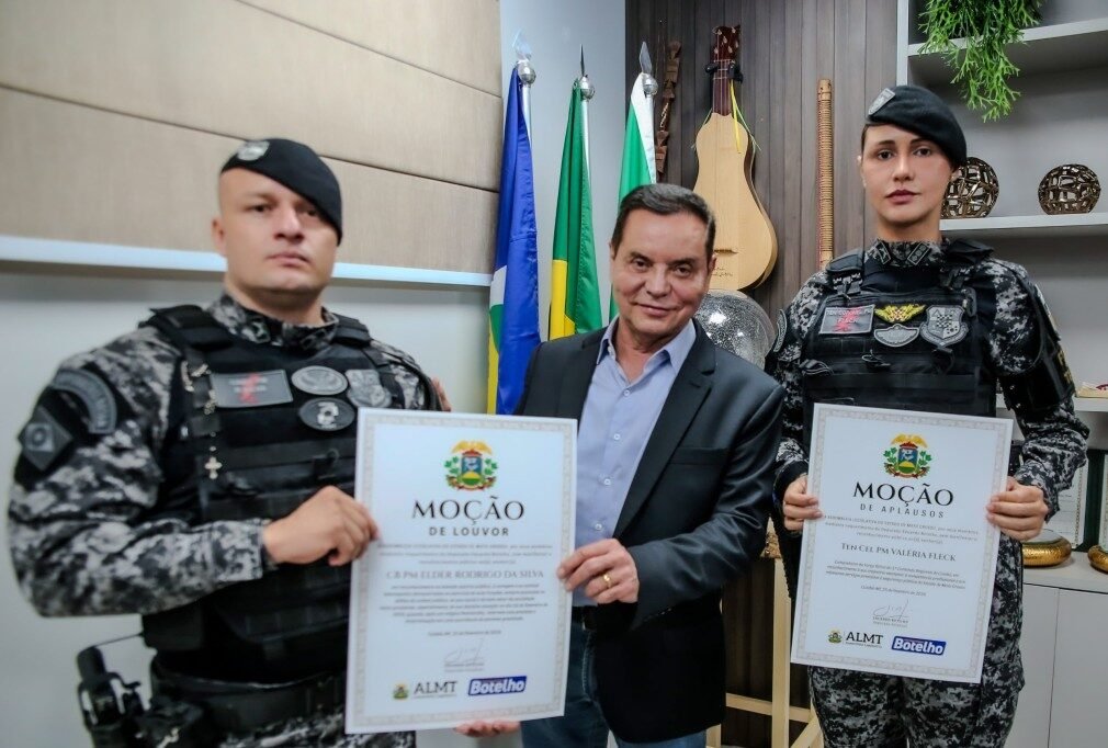 Além do reconhecimento ao ato de bravura, a Assembleia Legislativa também concedeu a Moção de Aplauso nº 267/26 à Tenente-Coronel Valéria Fleck, comandante da Força Tática do 1º Comando Regional de Cuiabá, em reconhecimento à sua trajetória profissional e aos relevantes serviços prestados à segurança pública do Estado.