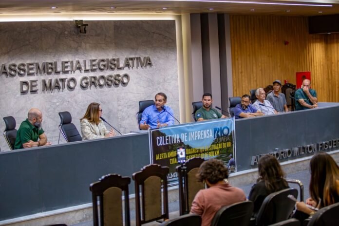 Durante coletiva de imprensa realizada nesta terça-feira (17), na Assembleia Legislativa de Mato Grosso (ALMT), foram apresentados os resultados do Diagnóstico Ambiental e Social da 3ª Expedição Fluvial pelo Rio Cuiabá, iniciativa apoiada pelo Parlamento estadual e requerida pelo deputado Wilson Santos (PSD). O levantamento reúne os principais dados e observações da travessia de aproximadamente 900 quilômetros, realizada entre os dias 9 e 13 de março, do Rio Manso até o Pantanal.