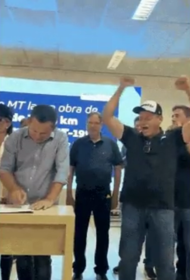 Um vídeo que mostra o deputado estadual Valmir Moretto (Republicanos) comemorando o resultado de uma licitação durante um evento oficial da assinatura da ordem de serviço do Hospital Regional de Pontes e Lacerda, a 483 km de Cuiabá, levantou suspeitas de um possível conflito de interesses nessa terça-feira (17).